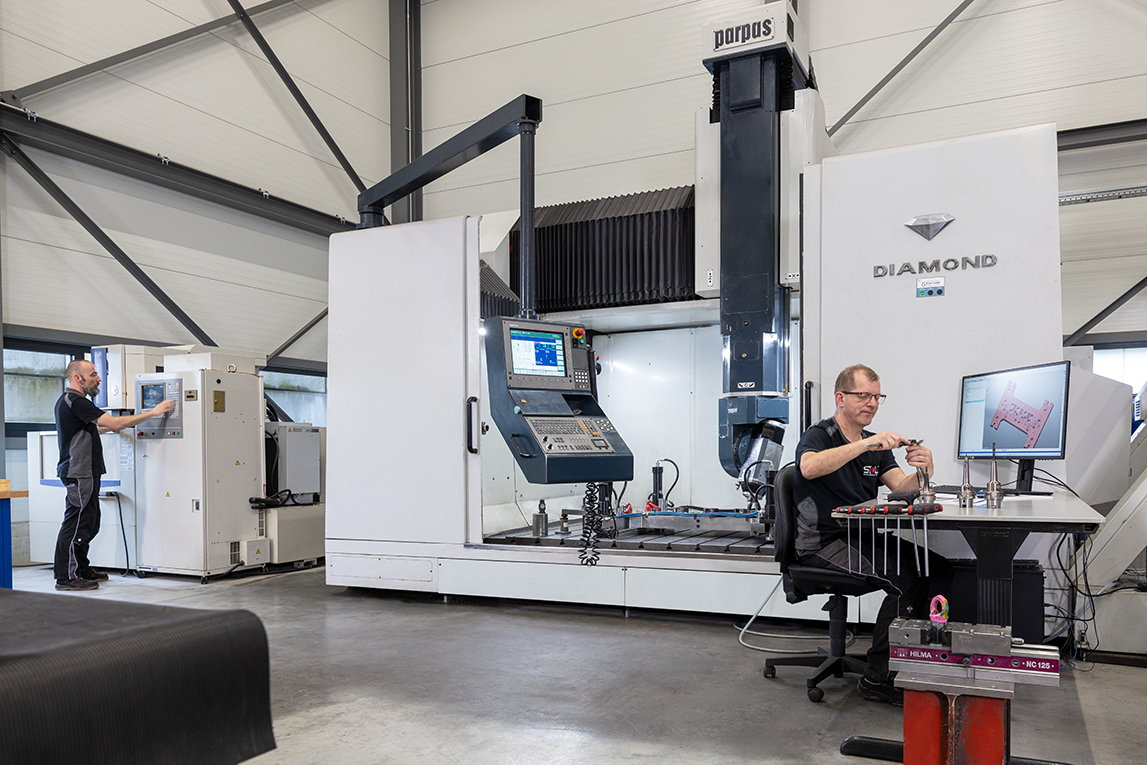 Our manufacturing facility spans more than 3000 qm and is equipped with three 50 t cranes. We operate CAD workstations, milling machines with table sizes of up to 6 meters, EDM machines with 2-meter tanks, a spotting press with 400 tonnes of clamping force, laser welding equipment and much more. This setup enables us to implement your requirements professionally and precisely.